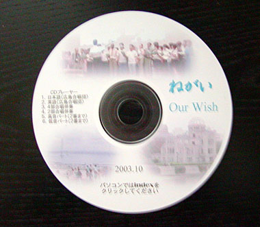「ねがいコンサート」の資金として「ねがい」の新しいCD(CDプレヤーでも、PCでもOK)を販売します。これ
