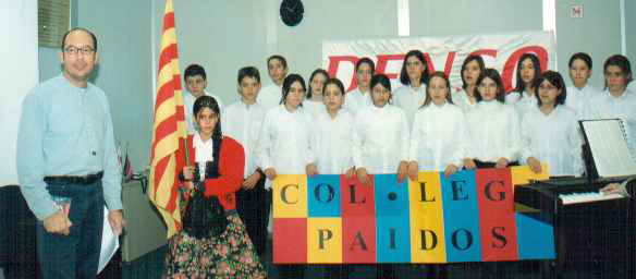スペインはCatalunya地方からでした。みんなとてもがんばったと共に、カタルニア語、スペイン語そして英語で歌ったのはとても意義のあることでした。準備に自分の時間を費やしてくれたAnna-Maria、カタルニア地方の伝統的な衣装を着て旗を持ってくれたちっちゃなGisela,ありがとう。Sant Fruitos de Bages村の日本企業であるDENSOがビデオ会議室を貸してくれたことも感謝しています。日本とカタルニアの協力でできたことでした。