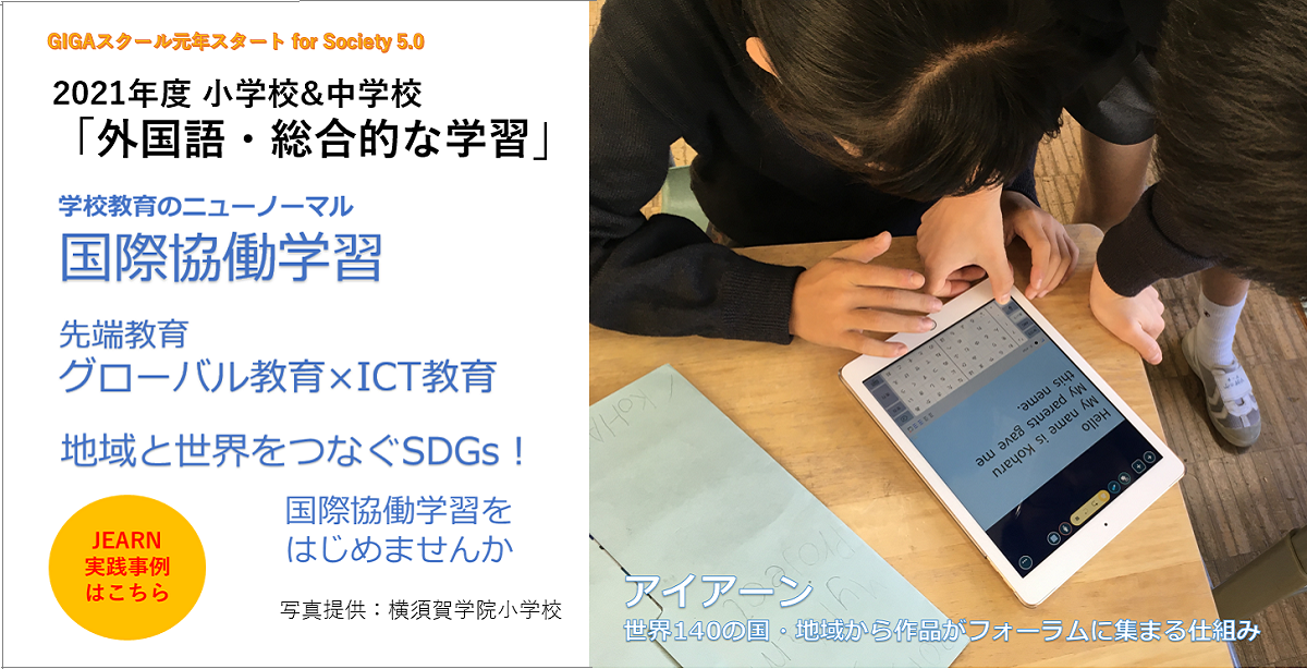 世界につながるiEARNのプロジェクトを通して行う国際協働学習は、教室内に「外国語」の必要性をつくり、「外国語」とその背景にある文化をとらえるきっかけをもたらし、外国語科での深い学びに容易に繋げることができます。4月からはじまるGIGAスクール構想の実現に向けて「1人1台情報端末」+「高速ネットワーク」を活用した新たな「外国語、総合的な学習」にその活用が期待されています。